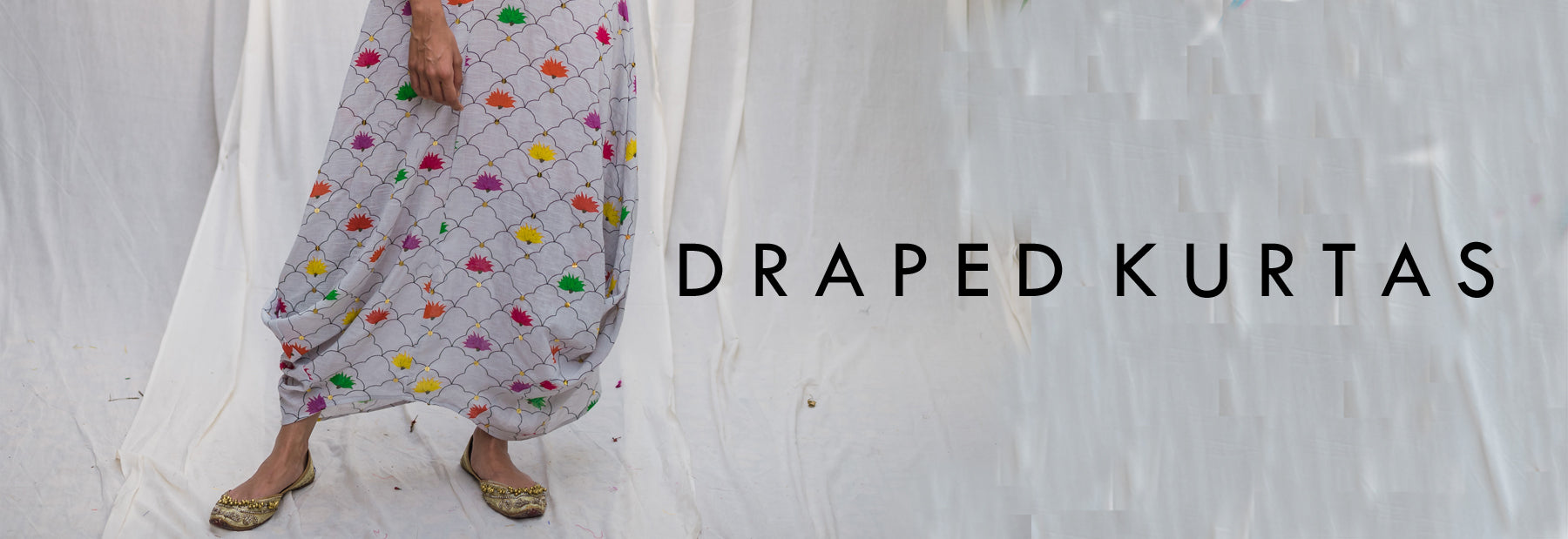 This easy breezy draped dress in hand embroidered to perfection in pure Noile Silk. It combines applique with Gota and Ari embroidery. Perfect for a beach wedding or Champagne brunch. Pure Noile Silk , Cotton Lining *Base colour can be...